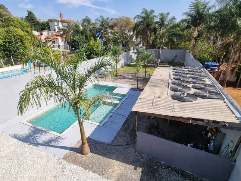 Piscina 10x4 m com prainha e aquecimento solar, perfeita para todas as estações