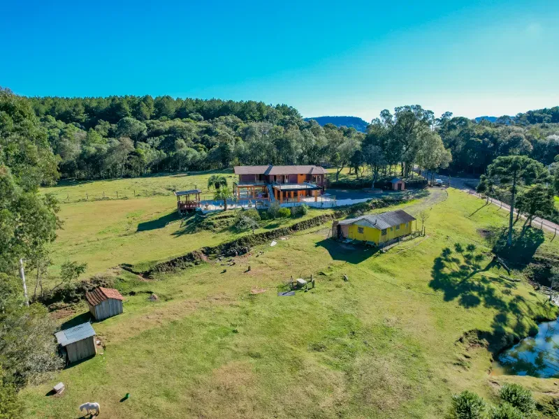 Localizada na comunidade de Sete Voltas, em Ponte Alta/SC, a propriedade conta com 11.700 m² de terreno muito bem cuidado e uma casa principal de 200 m², planejada para oferecer conforto e bem-estar.