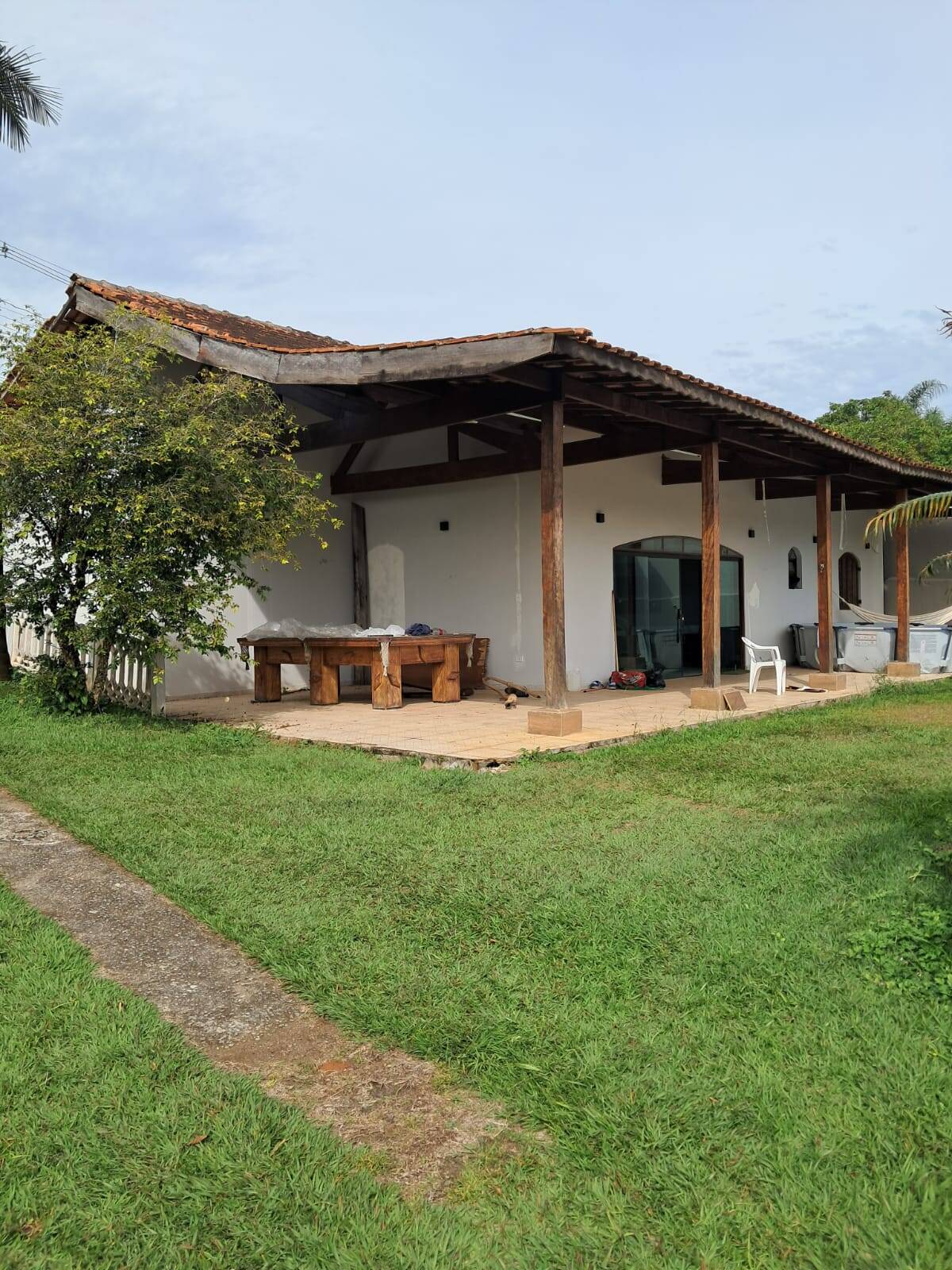 Casa com 3 dormitório sendo 1 suíte, casa avarandada, mais 1 casa com 3 quartos com banheiro para hóspede.