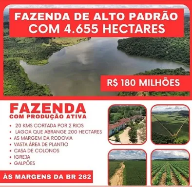 Fazenda de 4.655 hectares com produção ativa